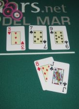 Situacija, kai iki eilės kombinacijos trūksta vienos iš vidurinių kortų, pavyzdžiui, jūs turite 8J , ant stalo atsiverčia 7 ir 9.