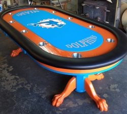 Stalas, ant kurio žaidžiamas pokeris.